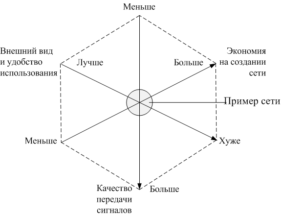 Если отбросить на время требования стандартов, то можно попытаться отыскать пути количественной оценки. Для наглядного представления этой информации используем приблизительную схему факторов, участвующих в определении свойств локальной сети.