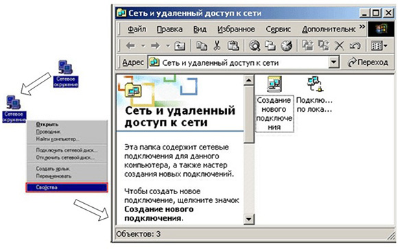 Очень сложно описать все разновидности ОС и протоколов, поэтому здесь они не будут описываться подробно. Кроме того, существует целый спектр программного обеспечения, используемый при создании сетей. Он, так же, не будет описан подробно, мы коснемся лишь связи систем с Windows по протоколу TCP/IP. Допустим предположение, что сетевые карты уже установлены и на рабочем столе появился ярлык "сетевое окружение".
