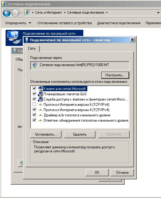 Подключение по локальной сети - свойства.